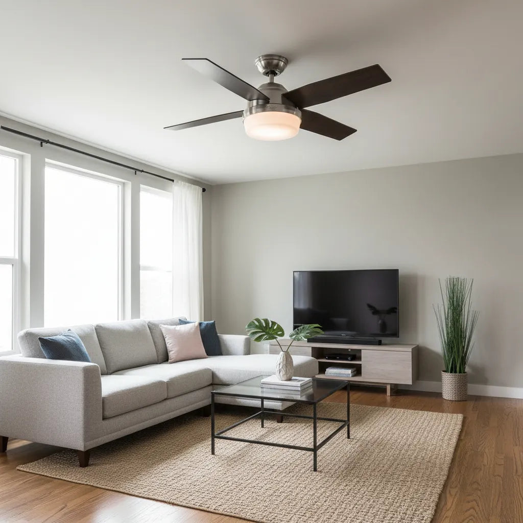 El motor WhisperWind® reversible garantiza un funcionamiento silencioso y eficiente, permitiéndote usarlo en modo verano para refrescar y en modo invierno para redistribuir el aire caliente, optimizando el consumo energético. Incluye una varilla de 6,4 cm para una instalación segura y sencilla.